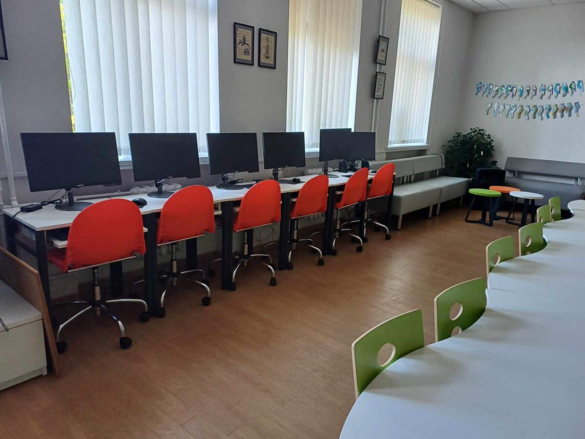Skaitykloje yra šešios kompiuterizuotos darbo vietos ir du bibliotekoje. Teikiama galimybė naudotis internetu. Gimnazijoje įdiegta MOBIS informacinė sistema. Ši sistema leidžia automatizuoti visus bibliotekinius procesus nuo dokumento gavimo, jo aprašymo iki skaitytojų aptarnavimo.